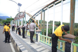 Upaya Daya Tarik Kawasan Wisata, Personel Gabungan Percantik Jembatan Kresek Madiun