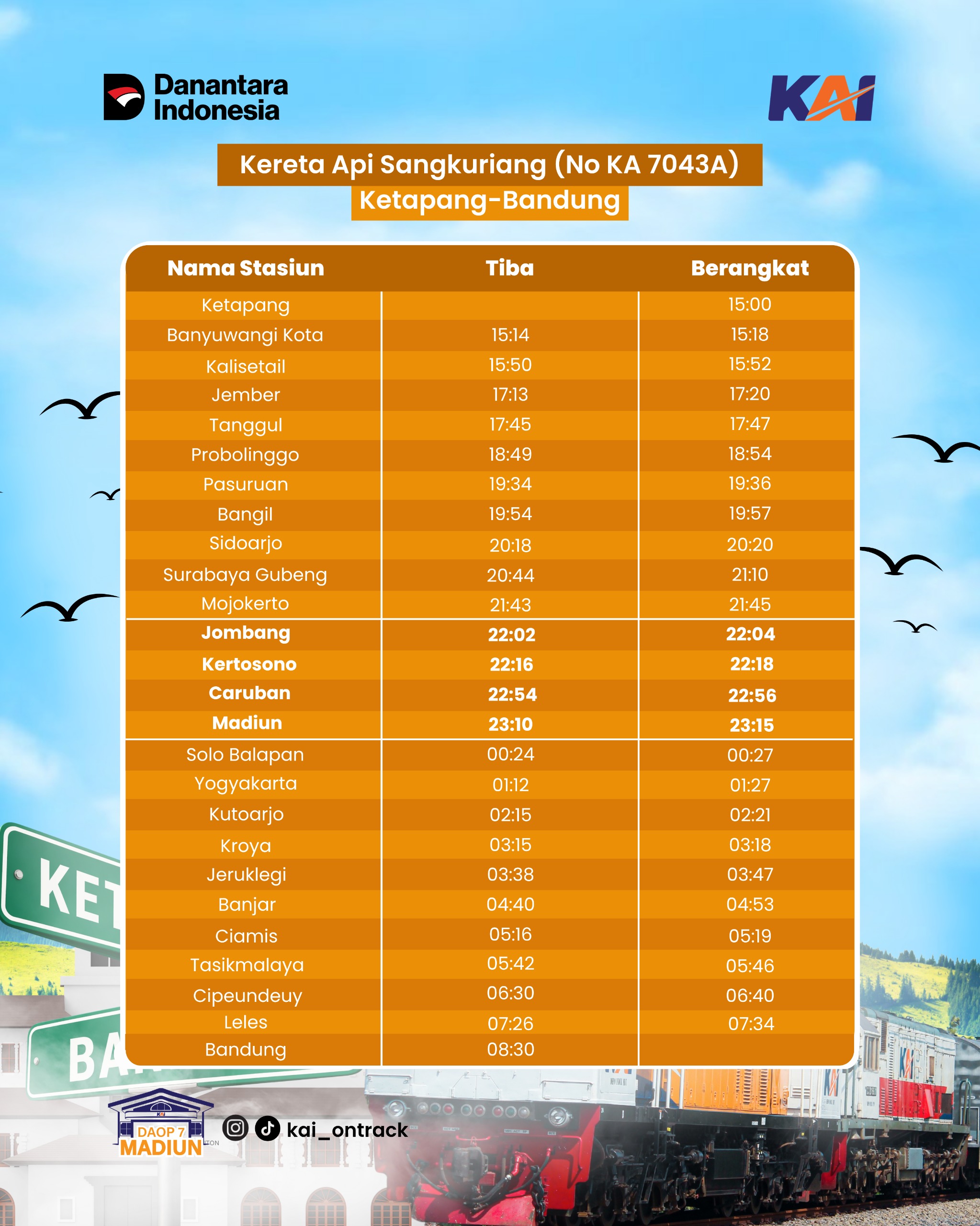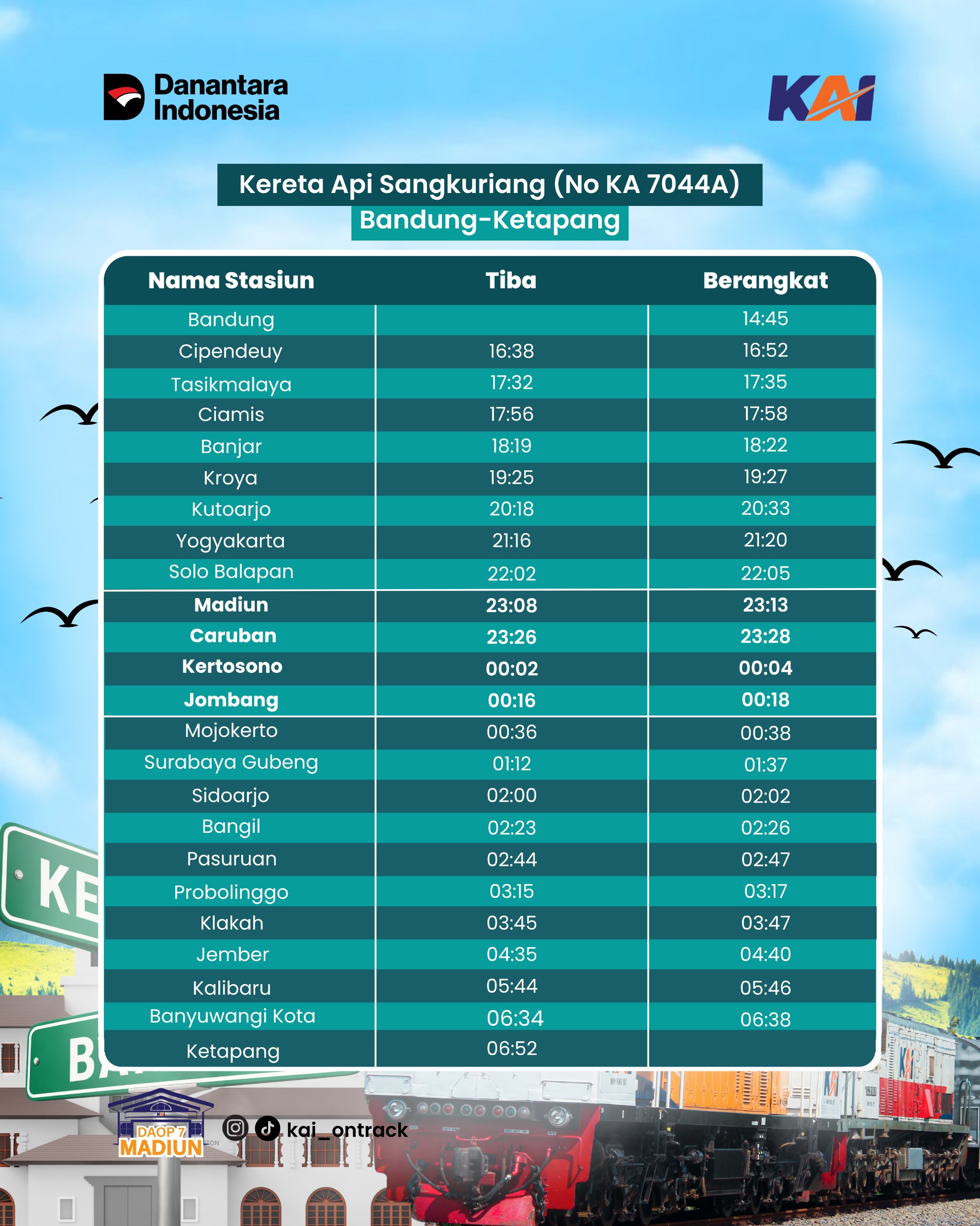 MADIUN – PT Kereta Api Indonesia/KAI (Persero) Daerah Operasi (Daop) 7 Madiun menyambut baik rencana peluncuran KA Sangkuriang rute Bandung – Ketapang (PP) yang akan mulai beroperasi pada tanggal 1 Mei 2026.