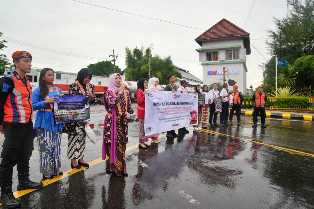 “Ada yang unik pada kegiatan sosialisasi kali ini. Semangat Kartini, kami bawa untuk mengingatkan masyarakat bahwa keselamatan di perlintasan sebidang adalah tanggung jawab bersama yang dimulai dari kepedulian diri sendiri,” ujarnya saat memimpin langsung kegiatan sosialisasi tersebut, Rabu 22 April 2026.