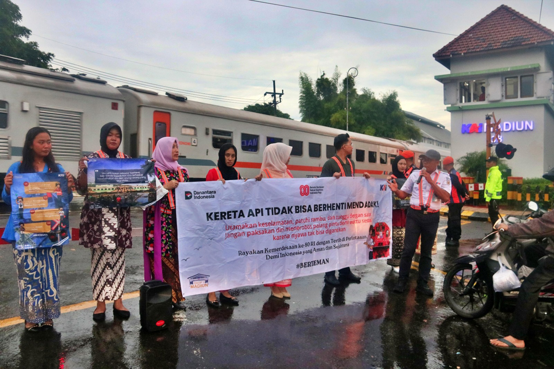 MADIUN – Masih dalam rangka Hari Kartini yang setiap tanggal 21 April selalu diperingati bersama oleh seluruh masyarakat, PT Kereta Api Indonesia/KAI (Persero) Daerah Operasi (Daop) 7 Madiun melaksanakan aksi unik sembari mensosialisasikan peraturan perlintasan sekaligus edukasi keselamatan perjalanan kereta api atau KA.