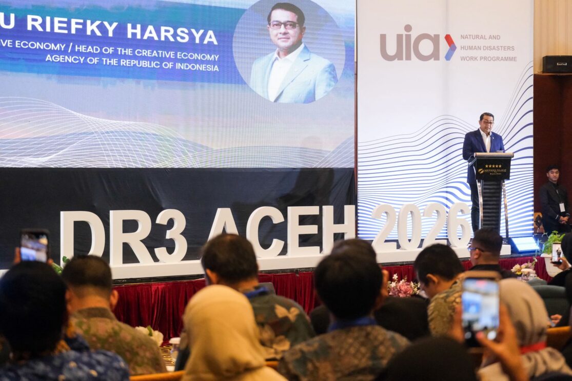 Banda Aceh, 17 April 2026 – Kementerian Ekonomi Kreatif/Badan Ekonomi Kreatif (Ekraf) hadir dalam International Disaster Resilience Workshop & Conference 2026 bertema Rethinking Architecture: Disaster Risk Reduction, Resilience & Recovery (DR3). Forum arsitektur internasional ini mengangkat isu strategis terkait peran desain dalam menghadapi ancaman bencana alam serta proses rekonstruksi pascabencana.