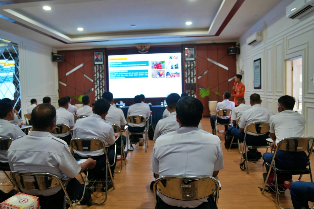 Selanjutnya, Tim Safety Inspector Kantor Pusat juga menyampaikan materi terkait Program Peningkatan Kinerja Keselamatan Tahun 2026, yang dilanjutkan dengan pemaparan materi teknis oleh Heru selaku QC Operasi KAI Daop 7 Madiun.