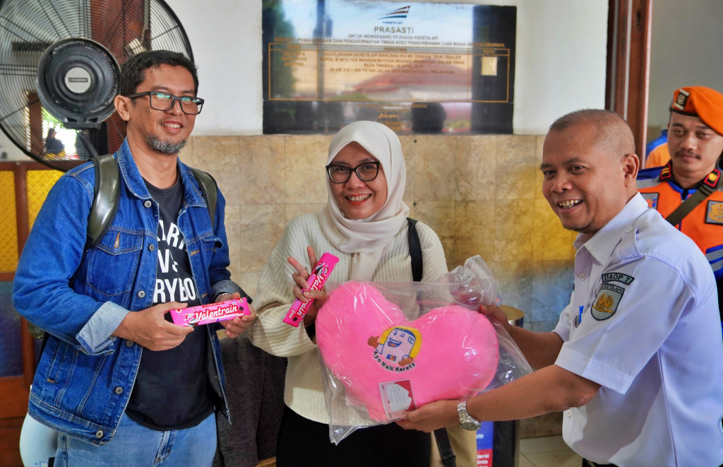 Sebagai wujud pelayanan yang lebih dekat, petugas KAI menyapa langsung pelanggan yang berada di ruang tunggu maupun area keberangkatan. Selain itu, souvenir cantik dan menarik dibagikan kepada pelanggan sebagai wujud kepedulian dan harapan baik di tahun yang baru.