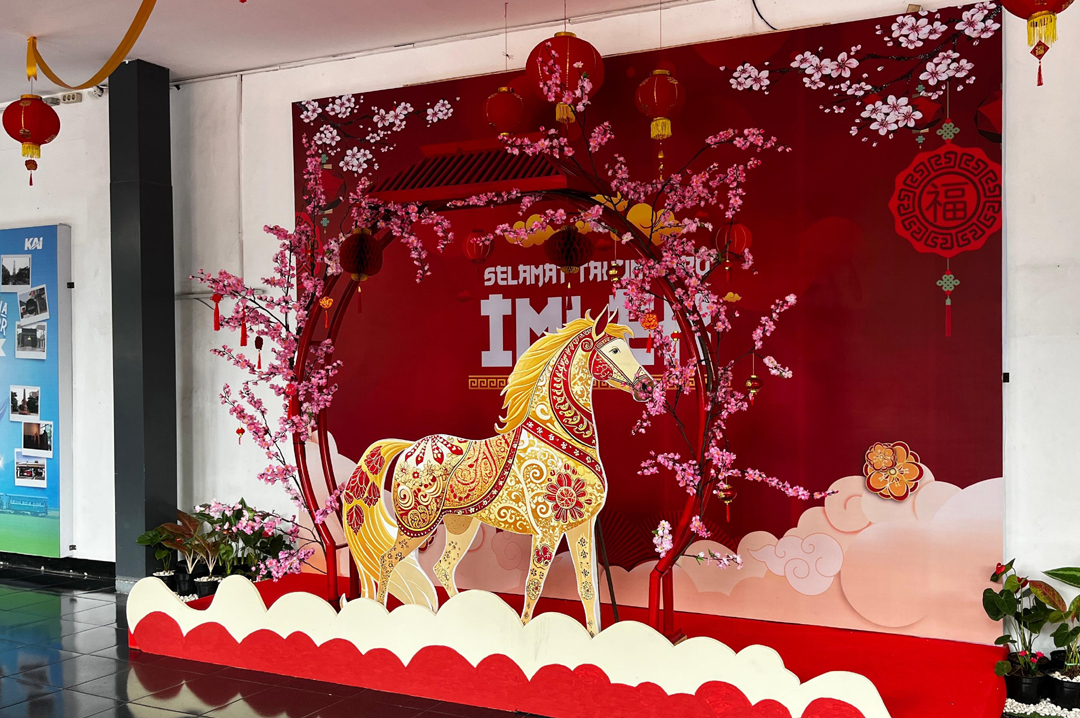Bahkan, salah satu daya tarik utama yang mencuri perhatian pelanggan tahun ini terletak di area drop zone Stasiun Madiun. Karena dari sekian banyak ornamen Imlek, yang paling menonjol dan menjadi favorit pelanggan adalah photobooth kuda api.