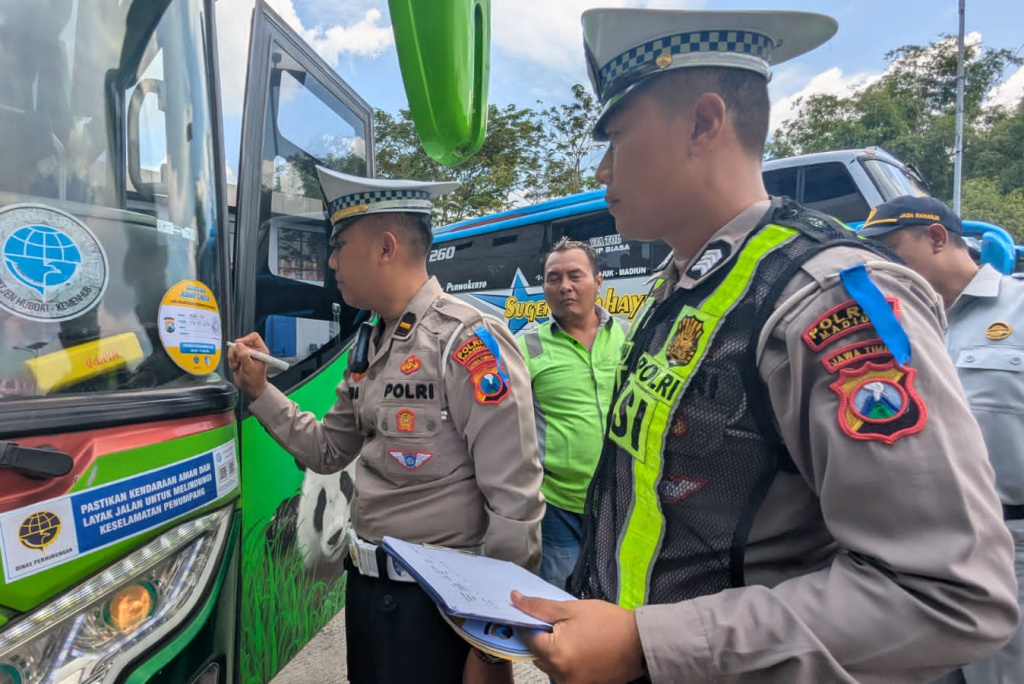 MADIUN – Polres Madiun melaksanakan kegiatan ramp check (pengecekan kelayakan kendaraan) terhadap angkutan umum, khususnya perusahaan otobus atau PO Bus di Terminal Madiun.